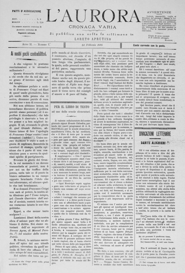 Rivista di Cronaca varia, si pubblicava una volta la settimana in Loreto Aprutino 1893-1895. Direttore responsabile Vincenzo Villanucci. Inizialmente si stampava a Pescara nella tipografia F.lli Zazzetta, poi a Loreto Aprutino presso la tipografia di V. Villanucci. Tra i collaboratori: Onorato Roux, Ernesto Calandra, Tommaso Bruno Stoppa, Gaetano Panbianco, Lucio Bologna.